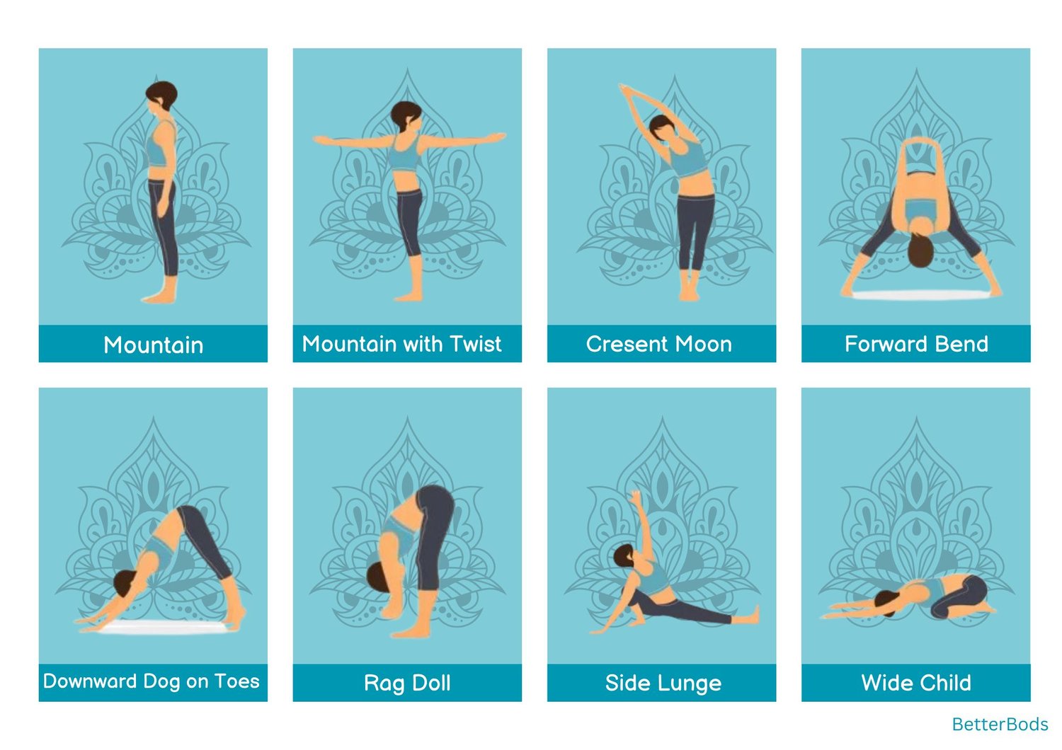 20 Better Sleep Yoga Exercises poster, plus instructions, 5 pages.