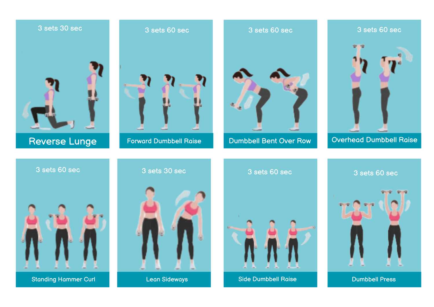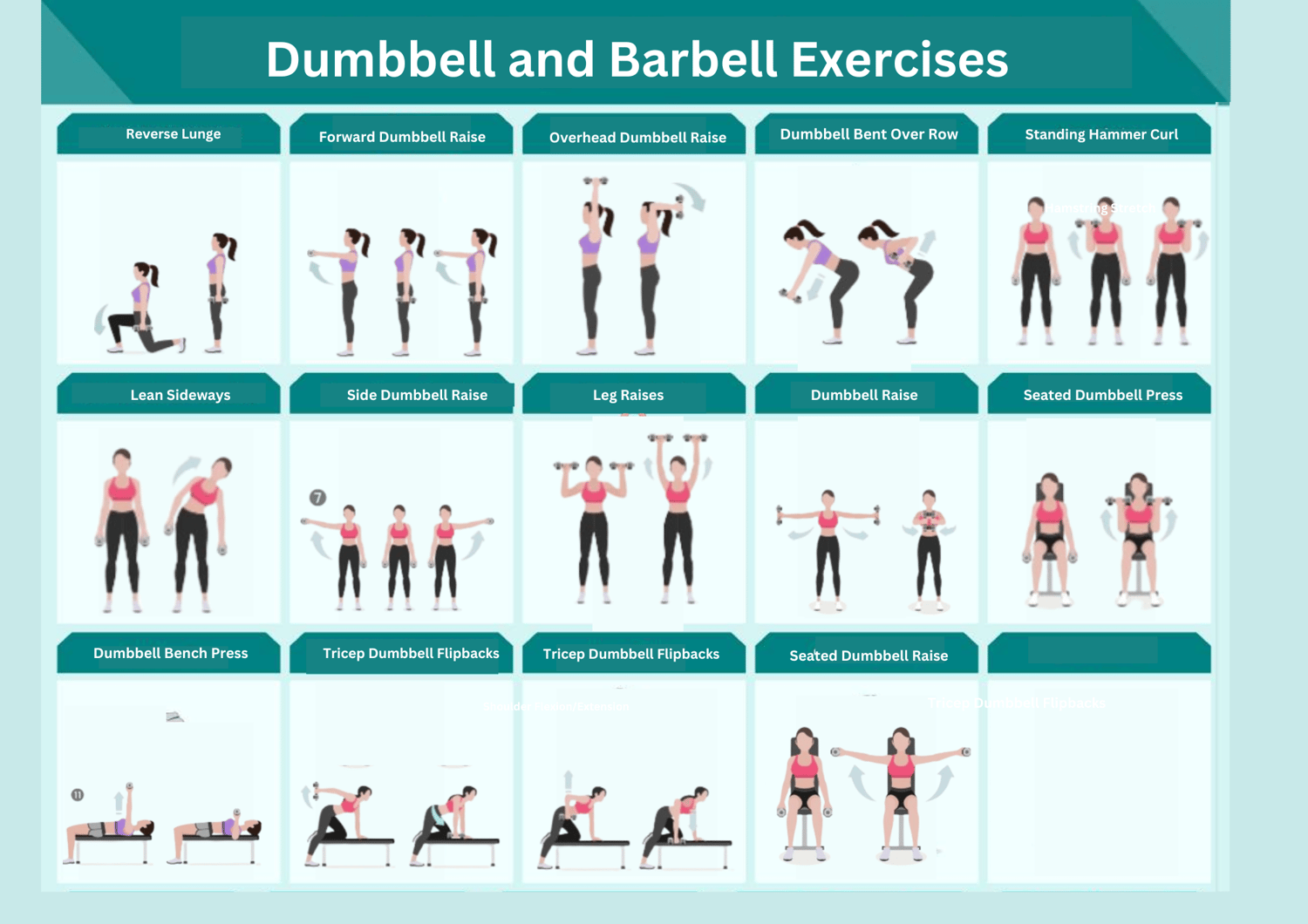 13 Dumbbell Barbell Exercise Cards, 2 page PDF