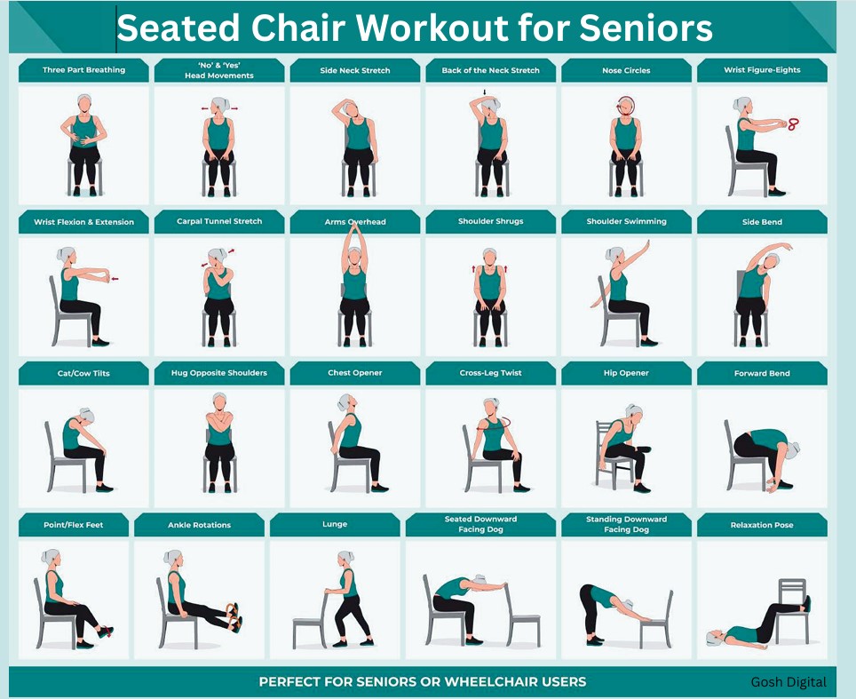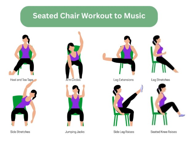 30 Dance Seated Workout Exercises for Seniors or Wheelchair Users - improve your balance and mobility using our exercises with full instructions. Chair Yoga to ABBA Workout Playlist & 10 min Routine.