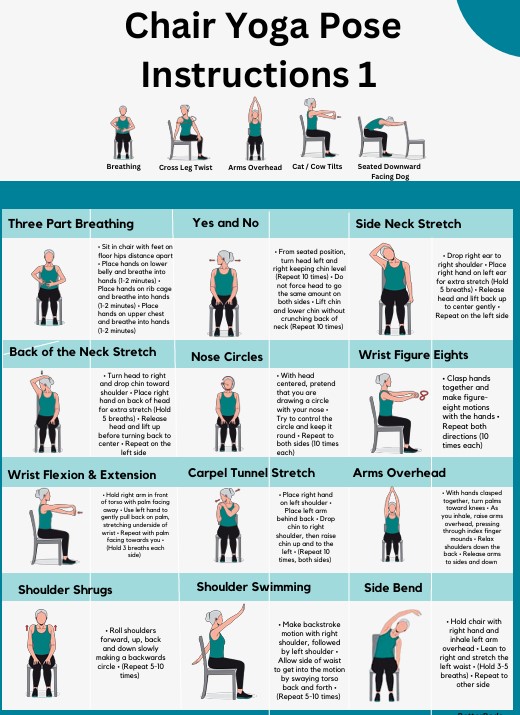 Chair Yoga Safety Notes are included for correct posture and to prevent injury, 8 pages.