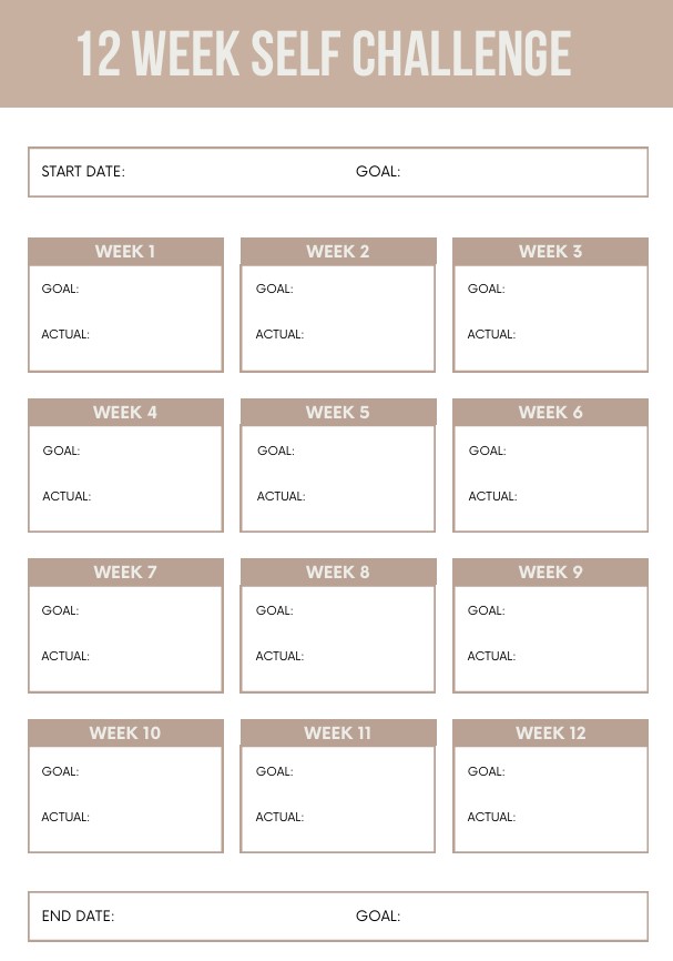 PLUS Fitness Goals and Challenge Planner with 12 Week Self Challenge.